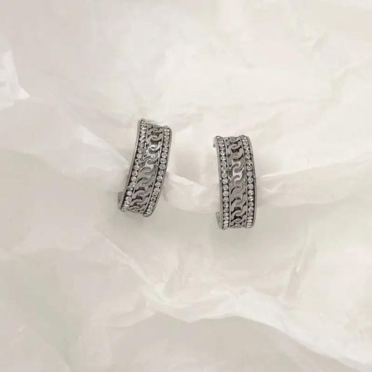 Fancy earrings with a diamond line, combining glamour and modernity in high-quality steel. These sophisticated jewels add a touch of brilliance to your style. Express your elegance with these trendy...Regular price $11.00 USDRegular priceUnit price perSale price $11.00 USD -